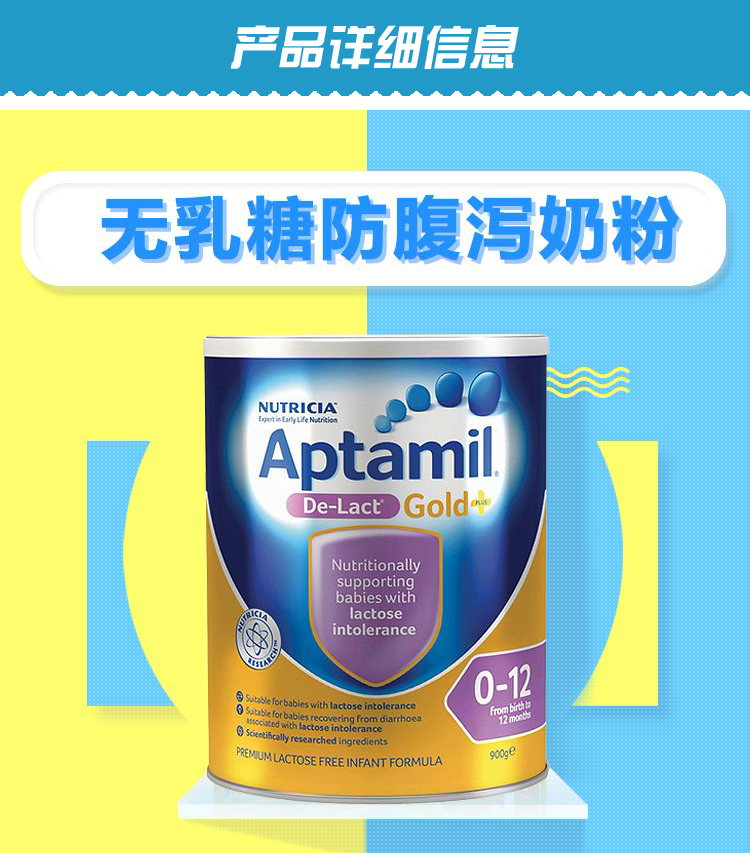 【产品名称】 Nutricia 爱他美 Aptamil de-lact 无乳糖 防过敏防腹泻 6罐