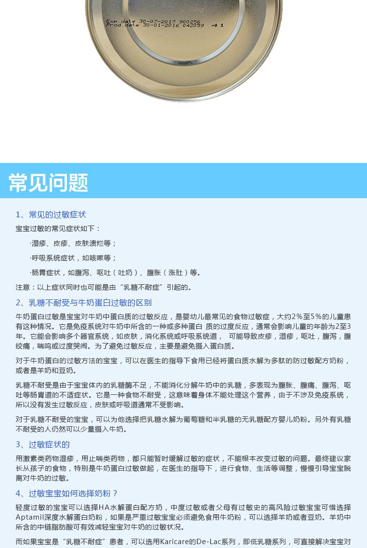 • 特殊配方:无乳糖水解